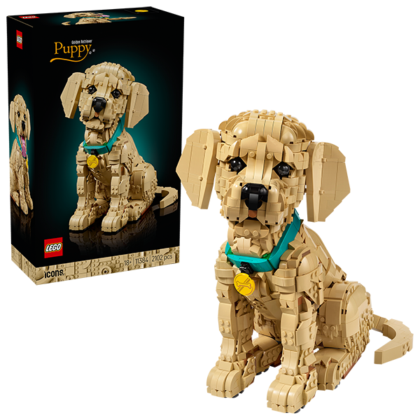 Store Gorinchem In stock Enjoy a heartwarming project with the LEGO Icons Golden Retriever Puppy (11384) model building kit for adults. This posable animal figure captures the charm of the much-loved dog breed, making it a must-have for animal lovers and golden retriever enthusiasts. Pose the puppy figure’s head, ears, and tail, and lift its front paw to create a variety of endearing expressions. Open its mouth to reveal rows of small white teeth and insert the pink tongue to add even more character. Finished with a colorful collar and medallion, this cute LEGO dog makes an adorable display for any space. Use the LEGO Builder app to zoom, rotate in 3D, track your progress and follow step-by-step digital instructions, while saving and tracking progress – all from the app.